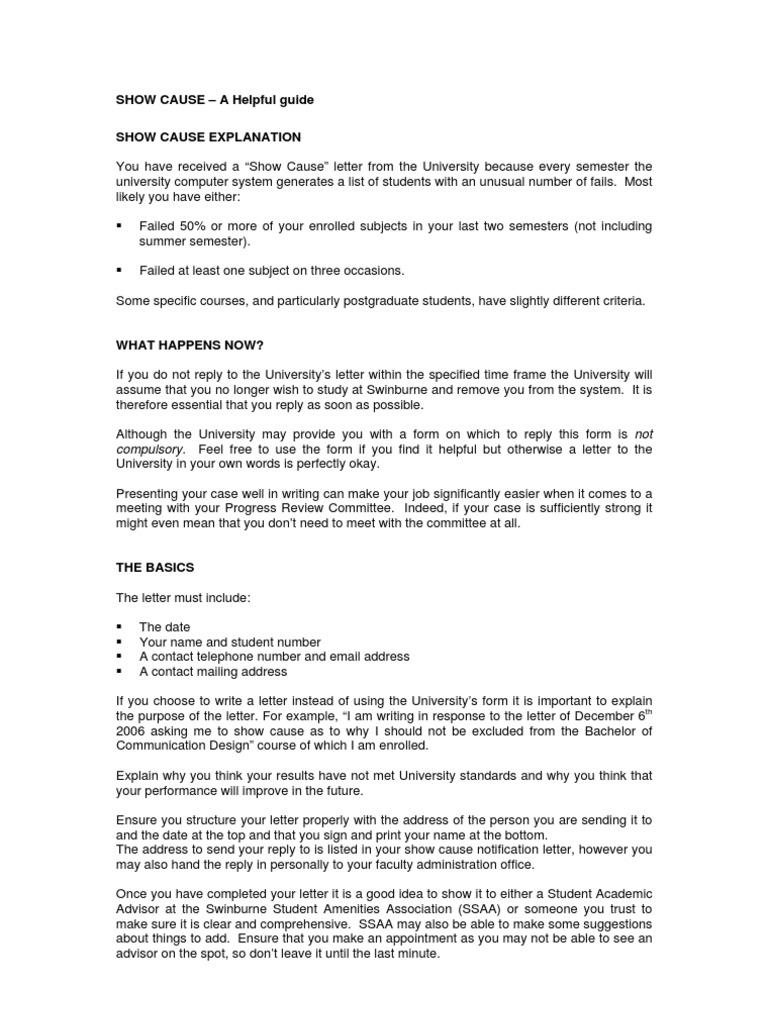 Show Cause Guide University Cognition