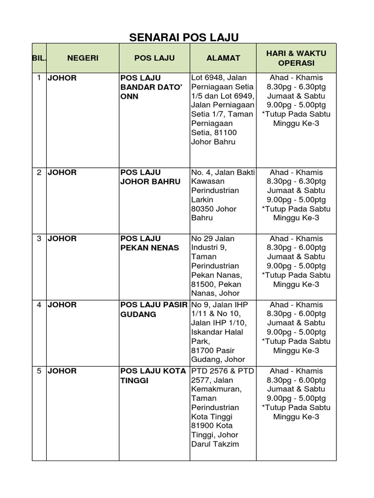 Pos Laju Wangsa Maju Waktu Operasi
