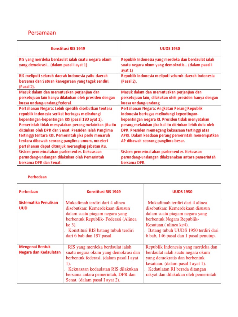 Persamaan Dan Perbedaan Konstitusi